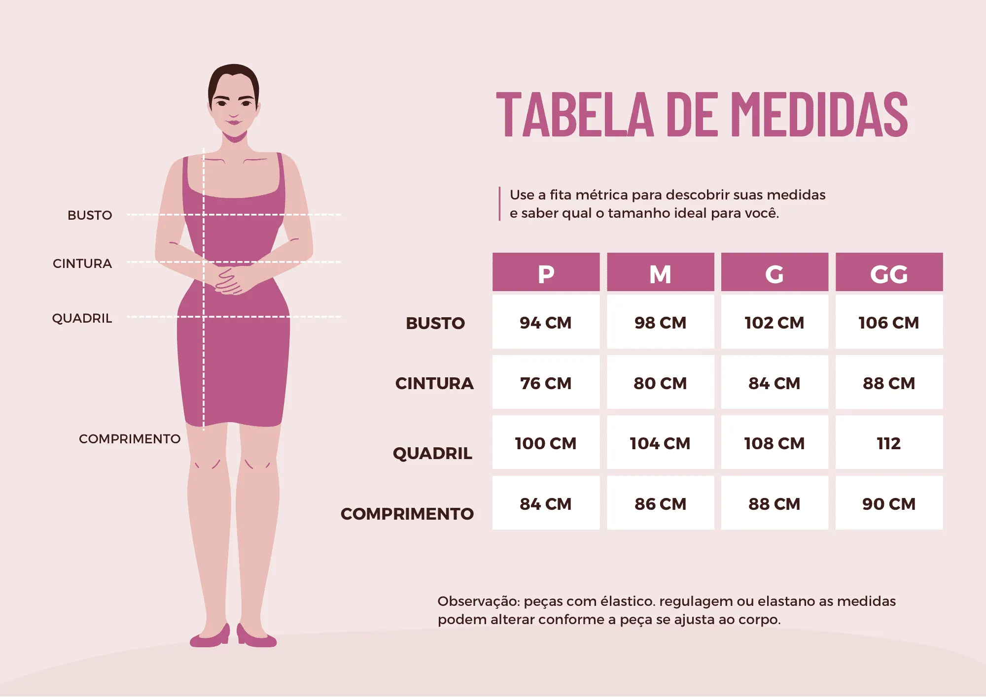 Produzido em tecido de 91% viscose, 8% poliamida e 1% poliéster, oferece toque macio, caimento fluido e conforto ideal para os dias de verão.